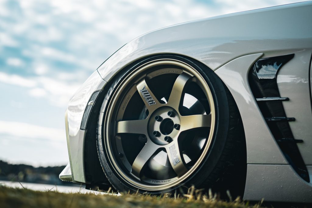 Pero el protagonismo a la vista de este conjunto son las llantas Volk Racing TE37 by Rays Engineering en color bronce, en 9,5 pulgadas de ancho en ambos ejes. Una llantas míticas en el ámbito JDM que aportan un estilo muy racing al conjunto, combinando perfectamente con el color blanco de la carrocería.
